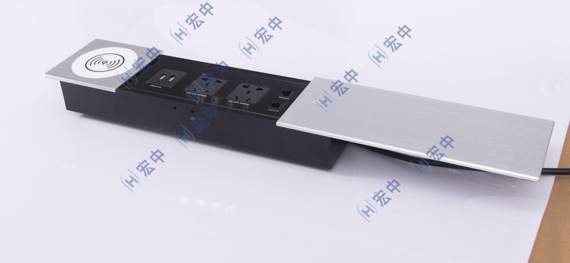 | 產(chǎn)品名稱(chēng):側(cè)滑蓋+無(wú)線(xiàn)充電 產(chǎn)品型號(hào):HZ-600A 產(chǎn)品尺寸:350*100mm 箱體尺寸:338*70*30mm 面板顏色:磨砂銀 接口配置:2個(gè)新國(guó)標(biāo)電源,1組USB充電,1個(gè)網(wǎng)絡(luò),1個(gè)電話(huà) |
